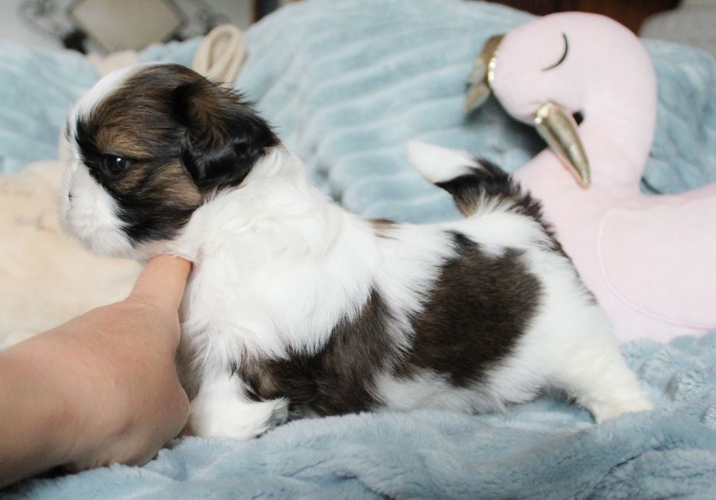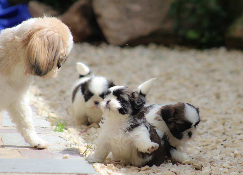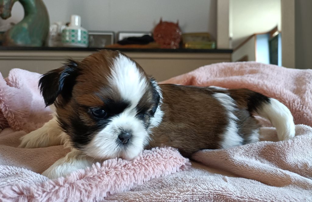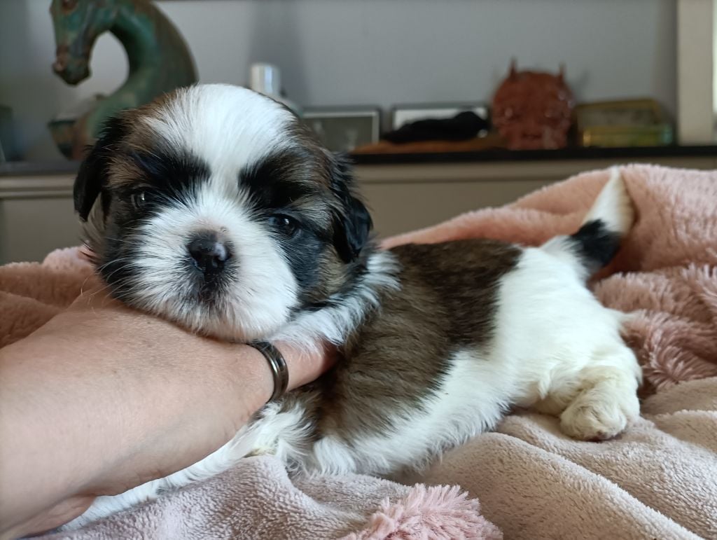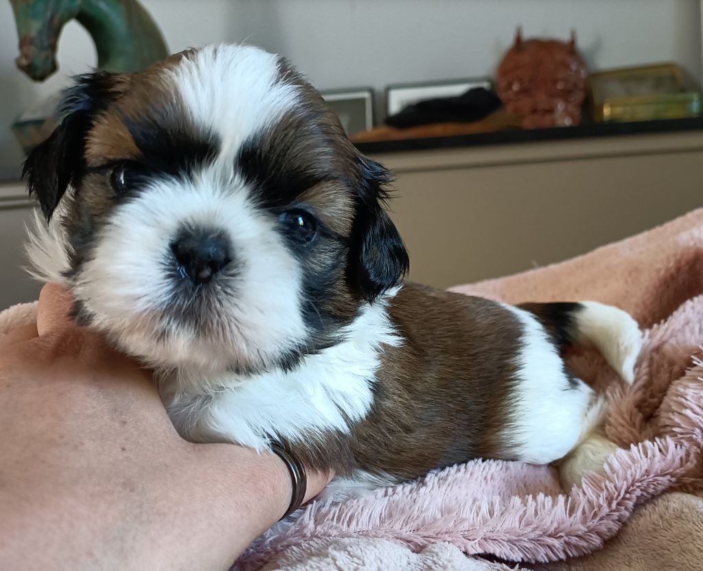 Très belles origines des parents. Grand Père le champion Beautiful Mind di Casa Corsini visible à la maison au pedigree italien prestigieux. Nombreux champions dont son père le champion du monde URSS Di Casa Corsini ainsi que le champion Double Choc From Audrey's Paradise du côté de la maman Shabadabada Land of Pandora. Les bébés seront disponibles à partir de début juin 2023, ils seront vaccinés et pucés, ils sont bien sûr vermifugés régulièrement. Ils auront les bases de l?apprentissage de la propreté et de l?éducation. Nos chiots sont accompagnés de leur certificat vétérinaire de bonne santé à leur départ ainsi que de leur livret de vaccination. Vous repartirez aussi avec des croquettes adaptées, ainsi qu'un petit doudou avec l'odeur de la maison et les conseils pour éduquer votre chiot dans les bonnes conditions. Nos chiots vivent en famille dans la pièce principale, en contact avec chiens, chats, enfants. Ils sont très éveillés et parfaitement socialisés (bruits de la maison, aspirateur, télé, chat etc?), ce sont d'adorables boules de poils. A leur départ, ils ont les bases de la propreté et ils sont habitués à être papouillés en permanence, donc prêts à leur vie de famille ! Les conditions de vie de votre futur chien sont essentielles au cours de ses premières semaines. Venez le voir évoluer dans les conditions idéales qui en feront un compagnon équilibré et facile à vivre ;-) Le shih-Tzu est un chien de famille adorable, il aboie très peu et il est très attaché à son maître. Si vous ne connaissez pas cette race, vous en tomberez vite amoureux. Photos ou vidéos supplémentaires sur simple demande. CONTACT 06 61 44 14 79